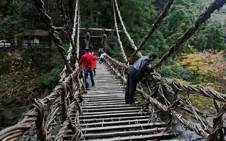 يقع وادي إيا (祖谷渓، إياكي) في قلب جزيرة شيكوكو الجبلية، ويظل أحد أكثر مناطق اليابان عزلةً ونقاءً. تُثير وديانه شديدة الانحدار، وغاباته المُغطاة بالضباب، وطرقه المتعرجة شعورًا بالخلود - مكانٌ تسود فيه الطبيعة، وتهمس فيه الحداثة بدلًا من أن تُعلن. يمتد الوادي على طول نهر إيا، مُحاطًا بقممٍ شاهقة مثل جبل تسوروجي، ثاني أعلى جبل في شيكوكو، والذي تُغذي ينابيعه منابع النهر. تاريخيًا، كانت عزلة الوادي حاجزًا ونعمةً في آنٍ واحد. فعلى مدى قرون، ظلّ الوصول إليه مُستعصيًا إلا عبر مسارات جبلية مُتعرجة، محافظًا على بيئته البكر، وحاميًا سكانه من التحولات السريعة التي تجتاح بقية اليابان. وحتى اليوم، يتطلب الوصول إلى الوادي الداخلي - المعروف باسم أوكو-إيا أو هيغاشي-إيا - سلوك طرق ضيقة متعرجة تلتصق بحواف المنحدرات وتغوص في غابة كثيفة. وقد ساهم هذا البعد في تكوين نظام بيئي فريد ومشهد ثقافي فريد. تنتشر المزارع التقليدية ذات الأسقف المصنوعة من القش على سفوح التلال، وتتدفق الحقول المتدرجة أسفل المنحدرات الشديدة، وتوفر جسور الكروم - المعلقة عبر الوديان العميقة - لمحة عن الهندسة القديمة والفولكلور. وادي إيا ليس مجرد وجهة؛ إنه متحف حي للتراث الريفي الياباني.