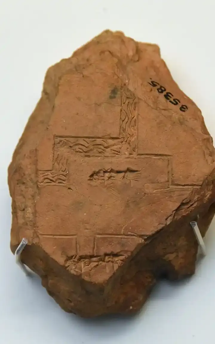 يُصوِّر هذا اللوح الطيني "طوبا"، إحدى ضواحي مدينة بابل القديمة. يُمثَّل نهر الفرات بالشريط المائي. 660-500 قبل الميلاد. المتحف البريطاني