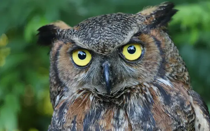 من الجوارح الليلية الضخمة و يتمتع بالرؤية الليلية الضخمة ويعتبر ملك الليل بين الطيور. خطورة البومة ذات القرون يعود لمهاجمتها الفرائس من الخلف وبالتالي لا تراها الفريسة قبل الهجوم. تعيش البومة ذات القرون من 20 وحتى 30 سنة. تتكيف البومة ذات القرون مع مختلف البيئات وحجمها الكبير الذي يعد الأكبر بين كل فصائل البوم. طولها حوالي 46 سم وطول جناحيها بين متر ومتر ونصف. لها ريش كبير حول الأذنين ويوجد ألوان متعددة لوجهها أما أحمر أو بني أو رمادي مع بقع بيضاء. لها أيضا سمع حاد وبصر ثاقب ورؤية ليلية جيدة ولديها القدرة على تحريك رأسها بزاوية تصل حتى 270 درجة لترى من جميع الاتجاهات دون الحاجة لتحريك جسدها بالكامل. تفترس الثدييات الصغيرة والمتوسطة مثل الأرانب والسناجب بالإضافة للطيور والزواحف والبرمائيات والأسماك.