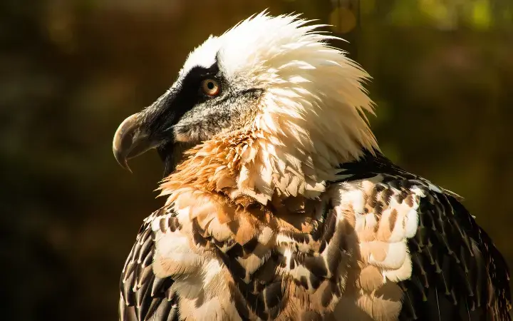 يسمى أيضا "نسر أبو ذقن". هو نسر ذو جناح ضخم حيث يصل طول جناحيه حوالي 3 أمتار. يأكل النسر الملتحي عظام الحيوانات مما يفسر تسمية البعض له بـ كاسر العظام، ويتحايل على العظام كبيرة الحجم حيث يقذفها من ارتفاعات كبيرة لتكسيرها لحجم أصغر. تتغذى صغار النسر الملتحي علي عظام صغار الوعول والماعز النافق. التغذية على العظام بالكامل من الأمور التي تميز النسر الملتحي عن غيره من الطيور، حيث يعد الوحيد من نوعه الذي يقتصر غذائه على العظام فقط.