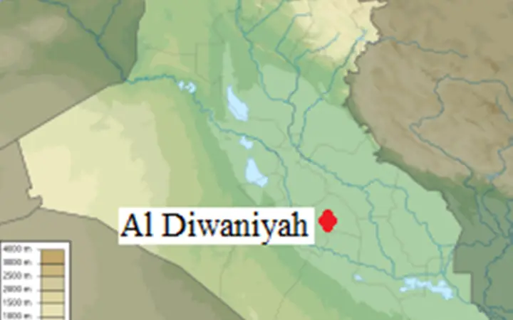 موقع مدينة الديوانية في العراق