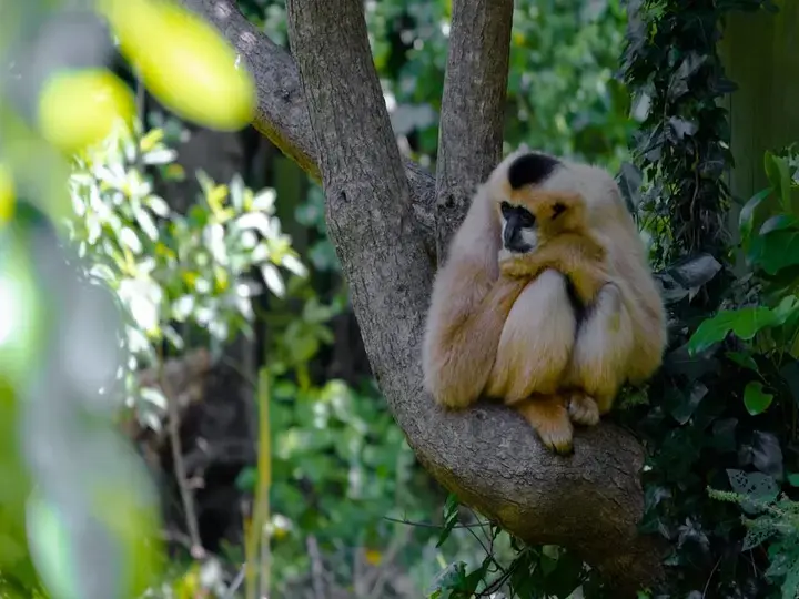 Biologists call the signature movement brachiation: arm-swinging travel beneath supports. In plain language, the animal hangs below branches and moves forward in repeated arcs, catching the next hold before the swing dies away. Gibbons are the living specialists of this style among primates.