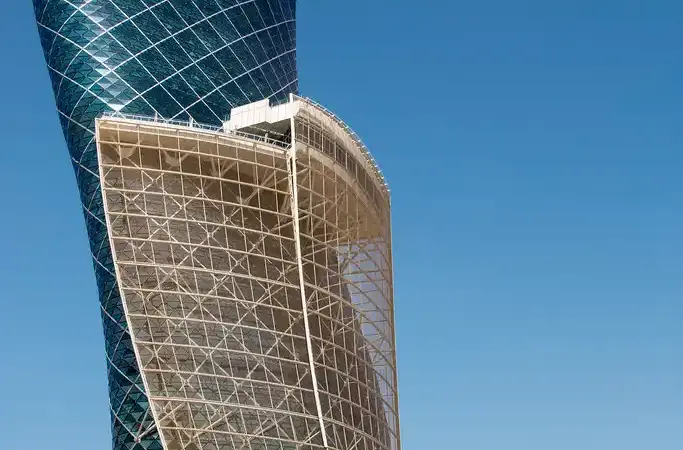 برج العاصمة "كابيتال جيت" في أبو ظبي يتحدى قوانين الفيزياء بزاوية ميل 18 درجة، أي خمسة أضعاف برج بيزا المائل، وهو رمز فريد للابتكار الهندسي في الإمارات ودخل موسوعة جينيس كأكثر ناطحة سحاب ميلانًا في العالم عام 2010.