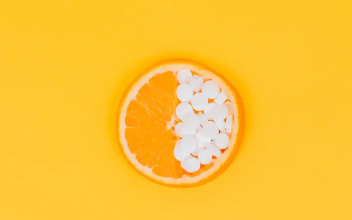 فيتامين C ضروري لصحة الجلد والجهاز المناعي، ويساعد على امتصاص الحديد والتقليل من الالتهاب. يوجد في فواكه مثل الكيوي والجوافة والفراولة، وقد يؤدي نقصه إلى ضعف العضلات ونزيف اللثة. الإفراط فيه قد يسبب مشاكل في الهضم وحصى الكلى.