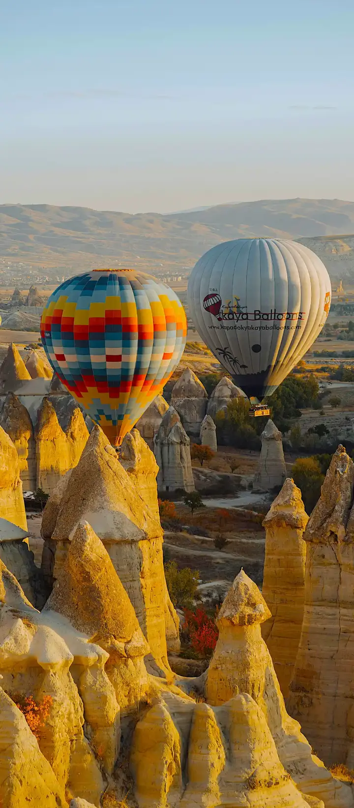 تجربة ركوب المنطاد فوق كابادوكيا تعد واحدة من أكثر التجارب التي لا تُنسى. عند الصباح الباكر، قبل أن تشرق الشمس تمامًا، تنطلق مئات المناطيد في السماء لتمنح المسافرين إطلالة ساحرة على المناظر الطبيعية لكابادوكيا. تطفو فوق الوديان والمداخن الصخرية، مما يتيح لك رؤية المنطقة من زاوية جديدة تمامًا. الألوان المتغيرة للأرض، مع تباين السماء الزرقاء الصافية، تخلق مشهدًا بديعًا يصعب وصفه بالكلمات.